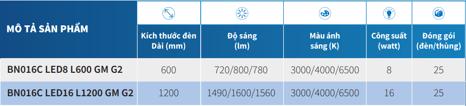 Đèn led máng batten BN016C G2 được chia làm 2 loại: